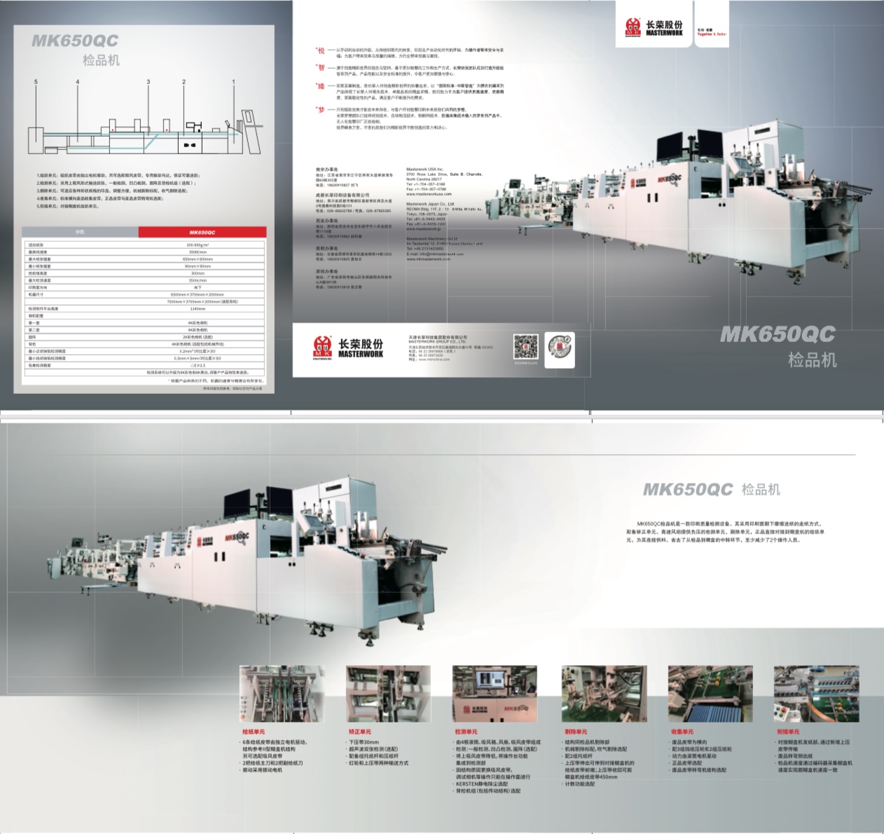 MK650QC檢品機是一款印刷質量檢測設備。其采用印刷面朝下摩擦送紙的走紙方式,配備矯正單元、高速風扇提供負壓的檢測單元、剔除單元,正品直接對接到糊盒機的給紙單元,為其連線供料。